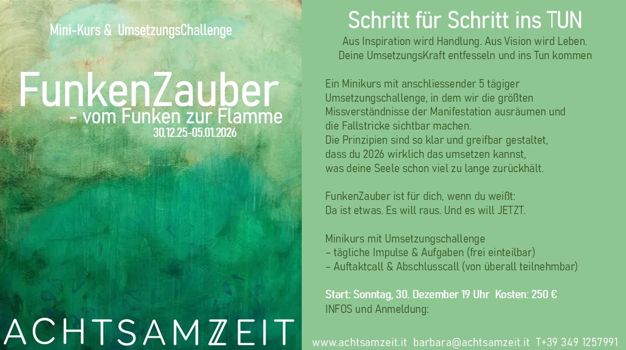 Du hast so viele Ideen. Visionen, die dich leuchten lassen. Doch manchmal brennt der Funke nur kurz auf – weil das Denken übernimmt, weil Zweifel dich ausbremsen, weil dir scheinbar etwas fehlt, um in Bewegung zu kommen.